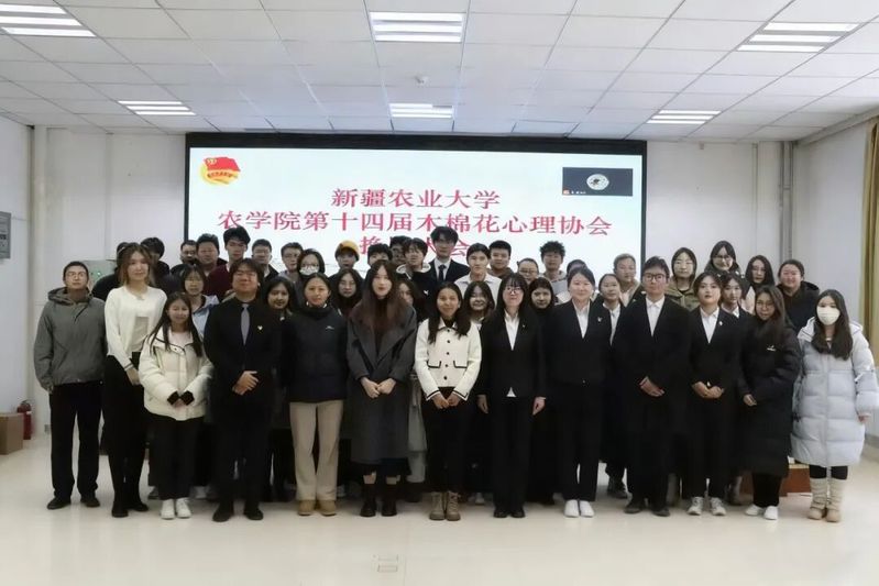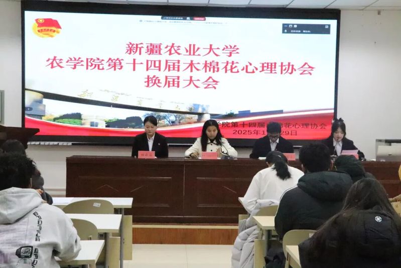 11月29日,农学院第十四届木棉花心理协会换届大会在农学院一楼多功能厅顺利召开。农学院心理辅导员古丽那扎尔·外力,第十三届、第十四届木棉花心理协会全体成员,农学院全体心理委员,各班级宿舍长代表共同参加了此次会议。会议由第十三届木棉花心理协会志愿者田晓梦主持。