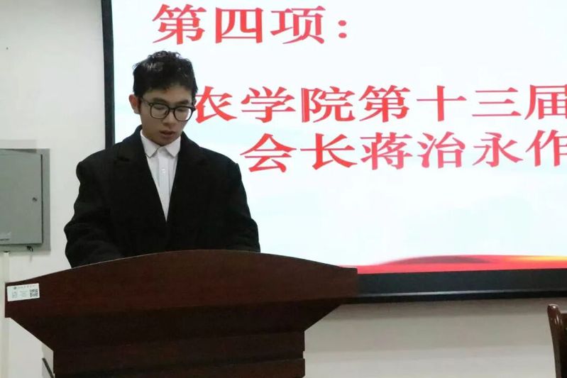 农学院第十三届木棉花心理协会会长蒋治永作工作汇报。他回顾了过去一年中,木棉花心理协会围绕“关爱心灵,助人自助”的宗旨,积极组织开展了多项特色心理健康活动,并多次主办和承办校级相关活动,广泛宣传心理健康知识。协会不仅为同学们创造了学习心理知识的平台,也为大家构筑了一个可以倾诉情感、彼此支持的温暖空间。