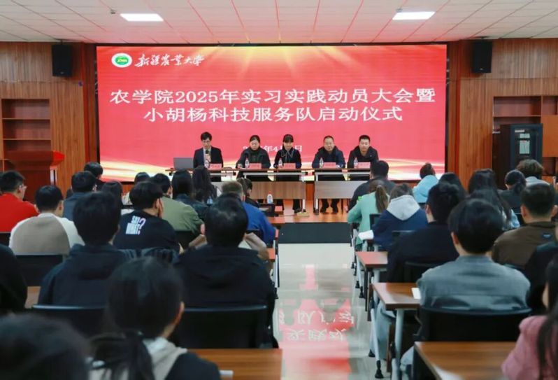 4月1日,我院于陆港校区会议室隆重召开2025年实习实践动员大会暨小胡杨科技服务队启动仪式。农学院党委书记顾爱星、院长陈全家、副院长汤秋香、援疆副院长司占峰、全体辅导员、大三年级班主任及全体学生参加会议,会议由学院学生工作办公室主任李亚杰主持。